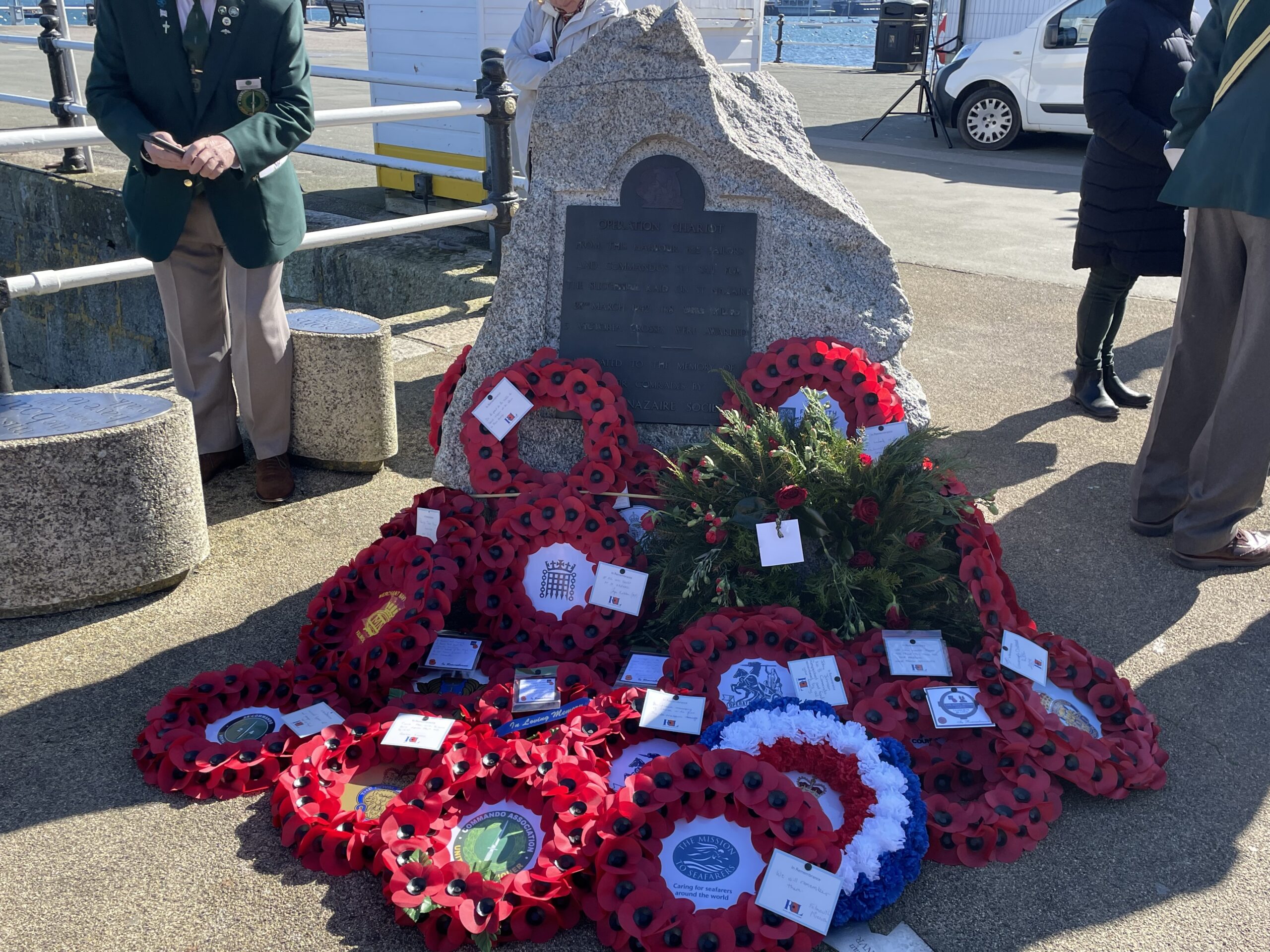 Every year Falmouth Town Council commemorates the Raid with a parade through the town from the Town Hall to the memorial at the Prince of Wales Pier, where a service is held. Normally taking part are the Mayor of Falmouth and the Town Council, Falmouth Branch Royal Naval Association, other veterans associations, the St Nazaire Society, the St Nazaire Raid Memorial Trust and in 2025 schoolchildren from St Nazaire, France.